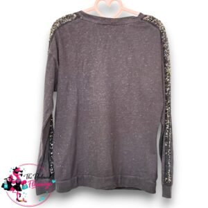 Beautiful charcoal grey Sparkly long-sleeved top from George in excellent condition. This is a lovely lightweight knit/jumper material with a sparkly finish. The standout feature is the gorgeous metallic sequin detailing running down both sleeves—perfect for adding a bit of sparkle to a casual outfit!