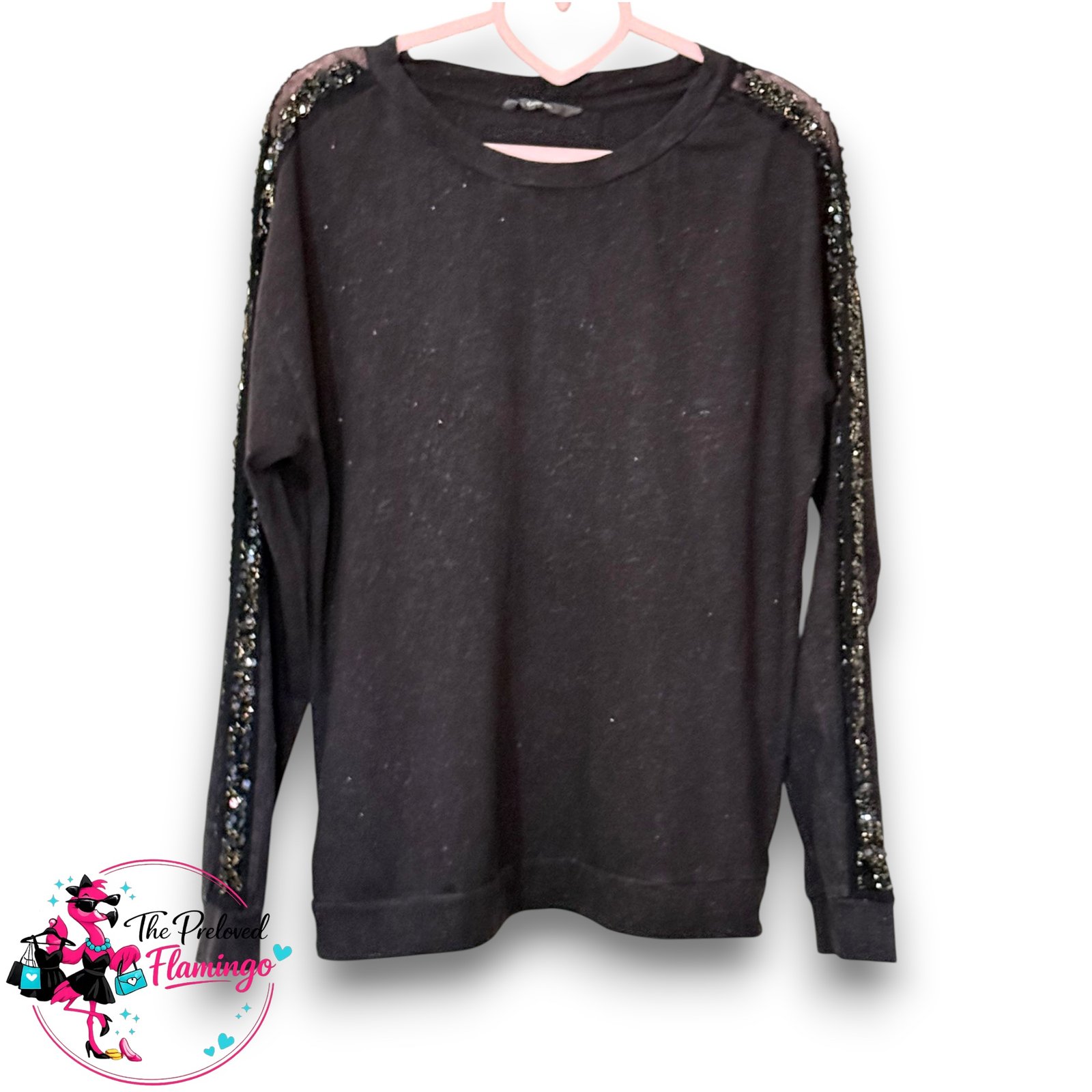 George Charcoal Grey Sequin Sleeve Jumper Top - Size 12George Charcoal Grey Sequin Sleeve Jumper Top – Size 12
