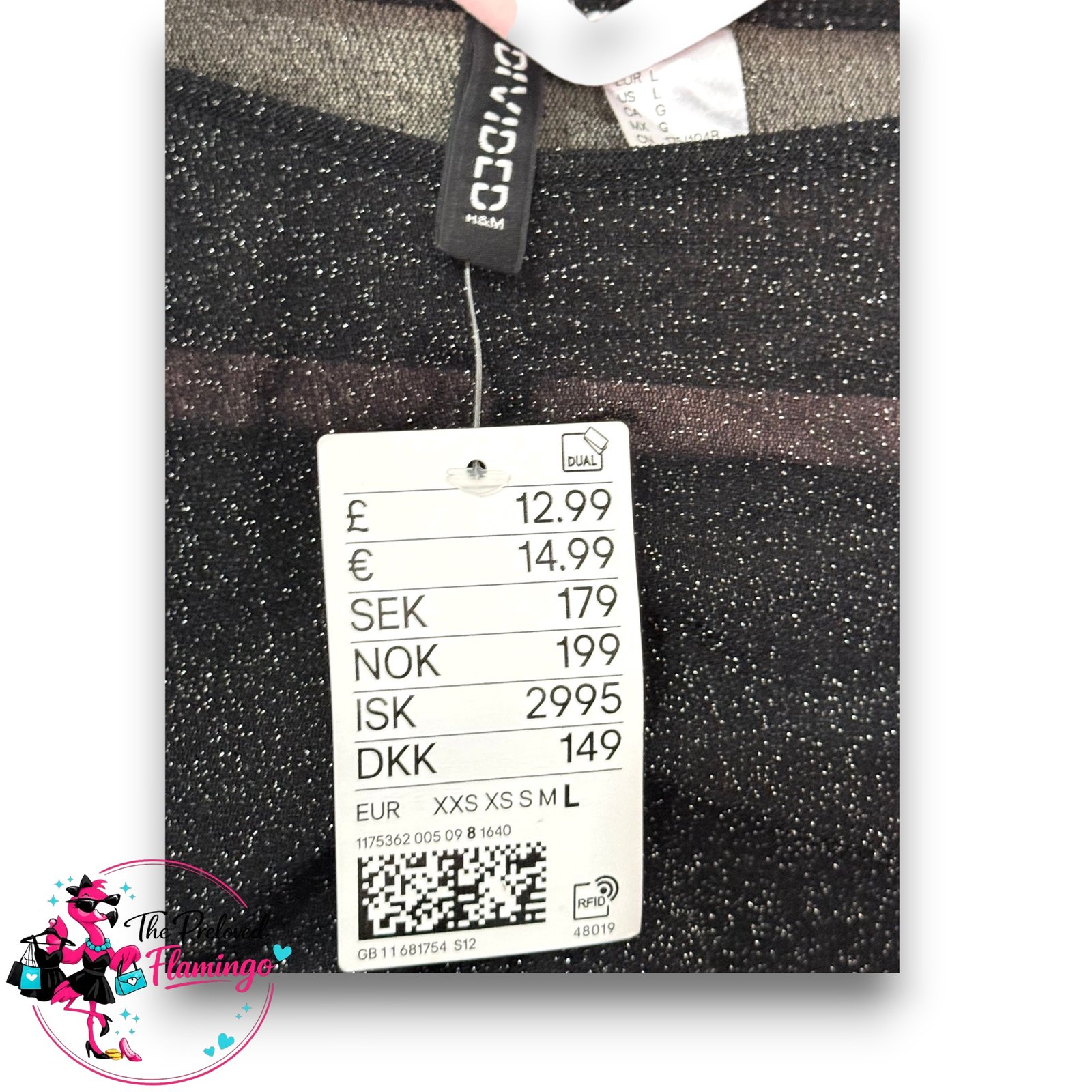Gorgeous brand new with tags long-sleeved top from H&M’s Divided line. This is a stunning black mesh material with a silver glitter/shimmer throughout, perfect for a night out or party!