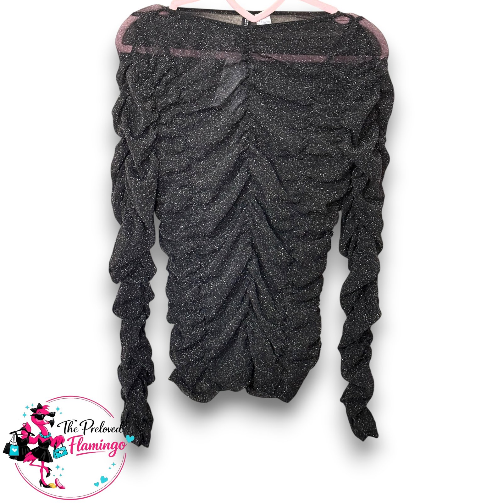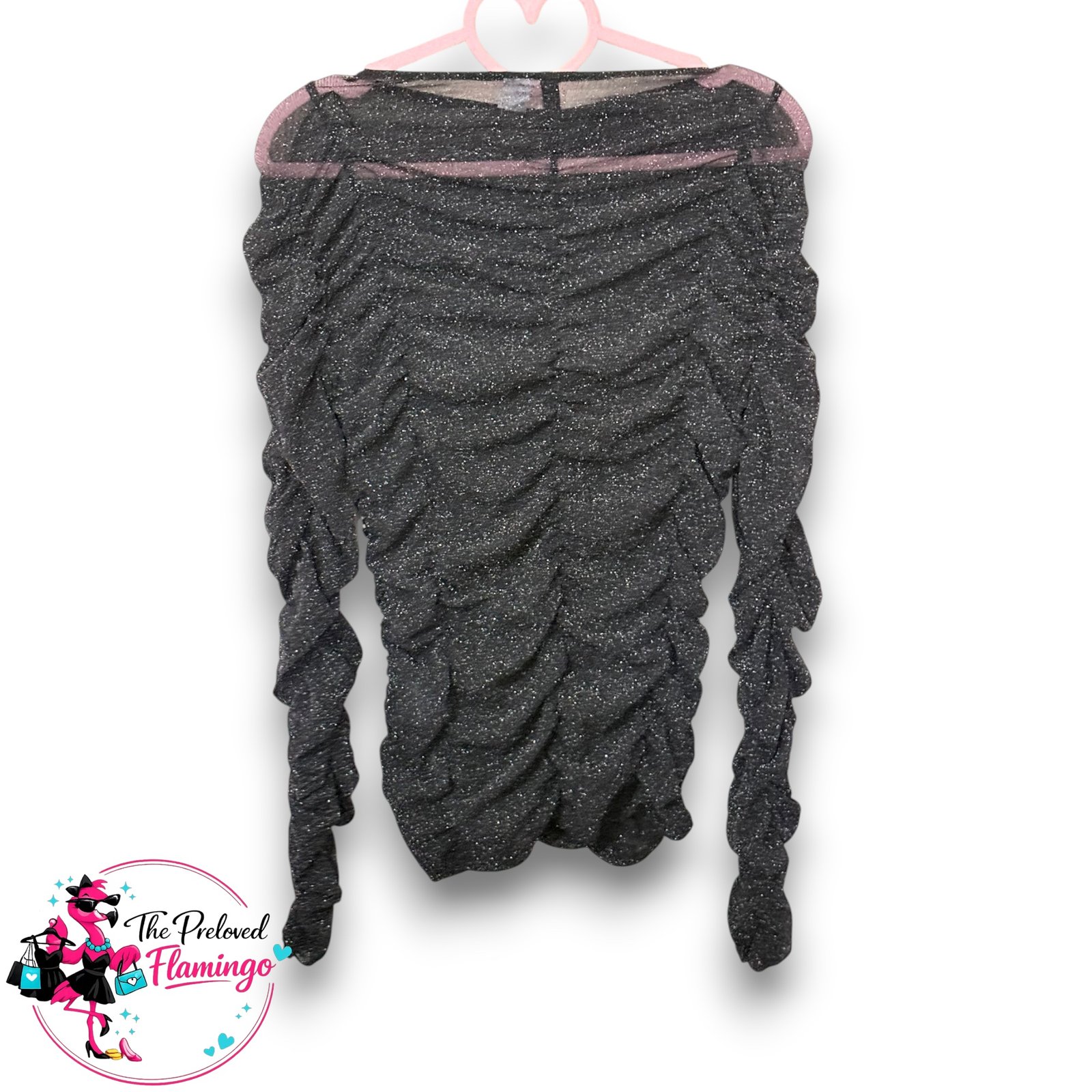 H&M, Divided, Mesh Top, Glitter Top, Shimmer, Ruched Top, Bodycon, Party Wear, Night Out, Sheer Top, Long Sleeve, BNWT, Y2K, Sparkly