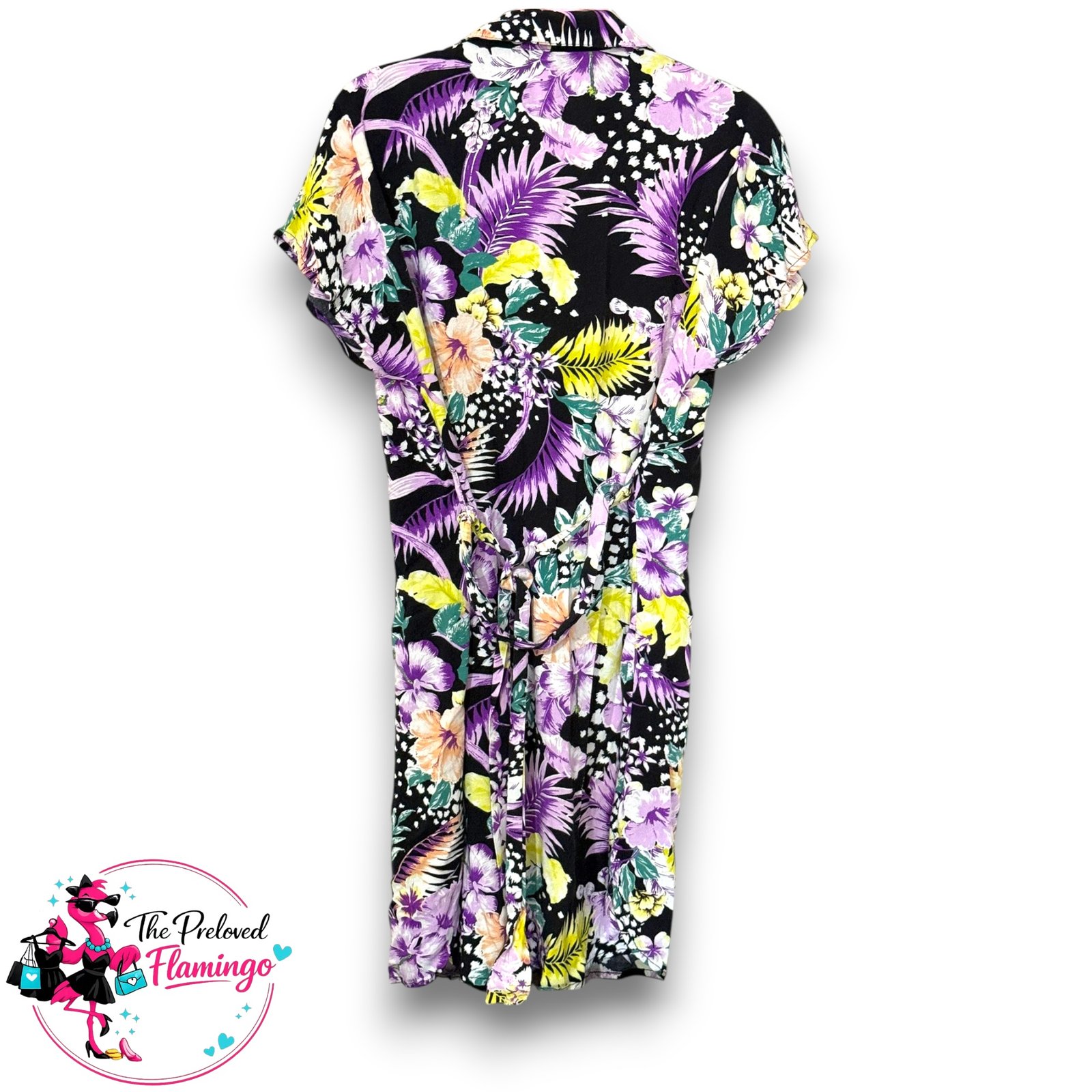 Lipsy London, Shirt Dress, Floral Dress, Tropical Print, Summer Dress, Holiday Wear, Size 10 Dress, Button Down, Tie Waist, Hawaiian Print, Occasion Wear