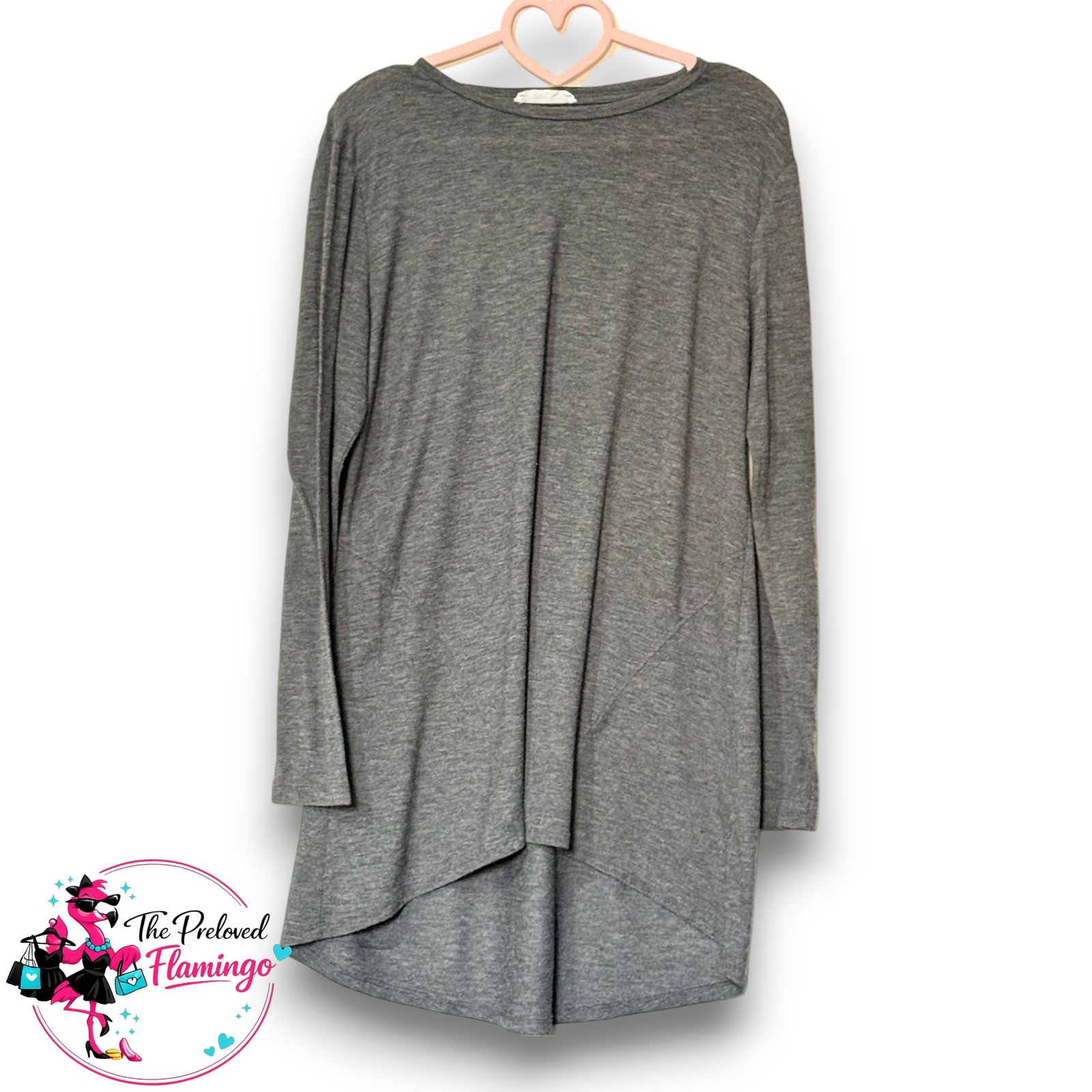 Primark Cares, Grey Tunic, High Low Top, Dip Hem, Long Sleeve Tee, Casual Wear, Sustainable Fashion, Jersey Top, Size Medium, Ladies Basics.