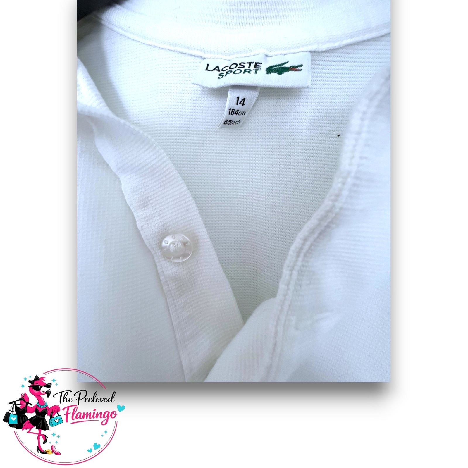 - Condition: Great pre-loved condition. Clean, white, and well-maintained. Â Spare Button on Label